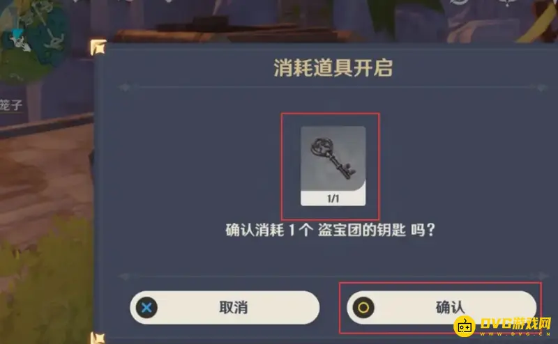 4、找到宝箱,领取1个盗宝团的钥匙,再点击开启。
