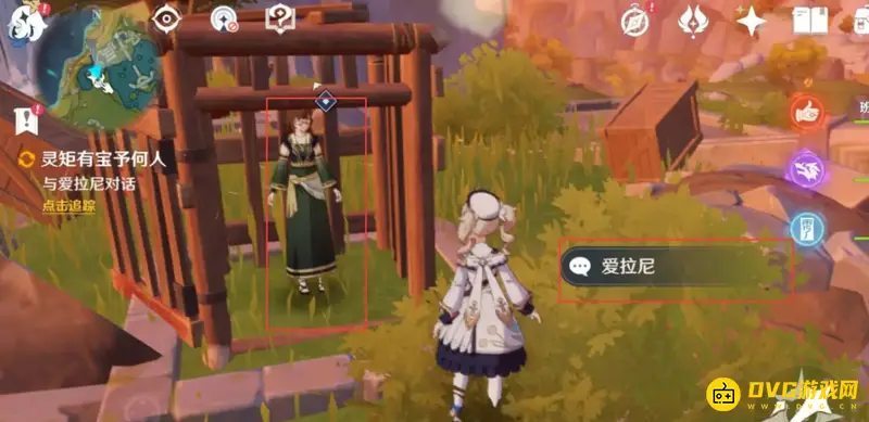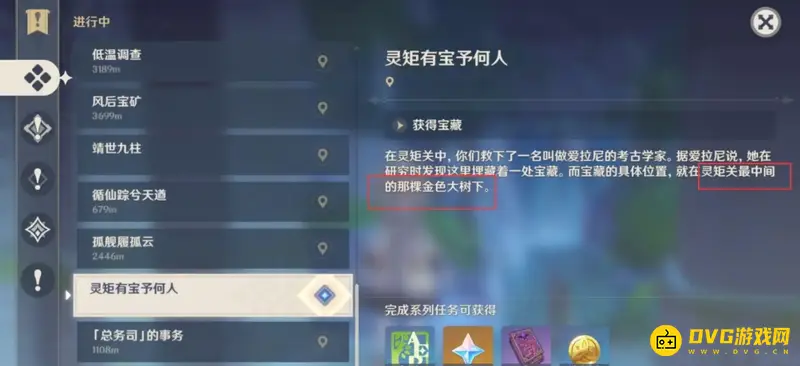 7、任务面板提示,去灵矩关最中间的那颗黄色大树下找宝藏。