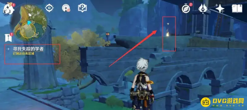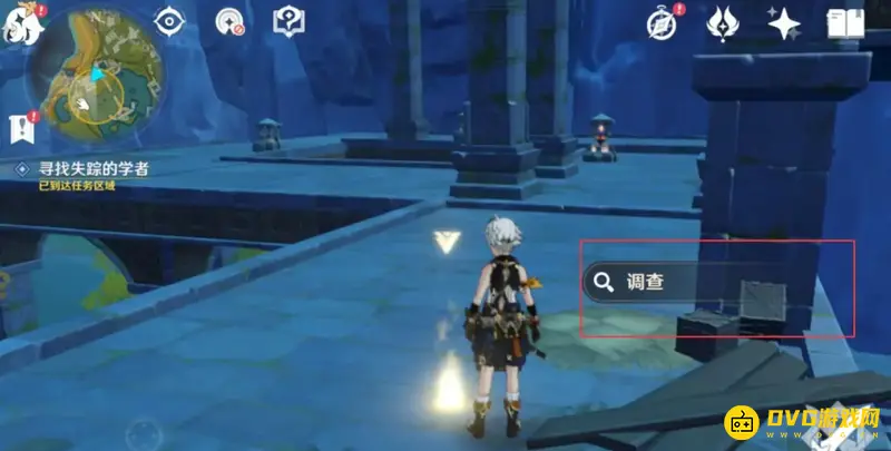 1、触发寻找失踪的学者任务,去到有黄色三角形标志的地方。