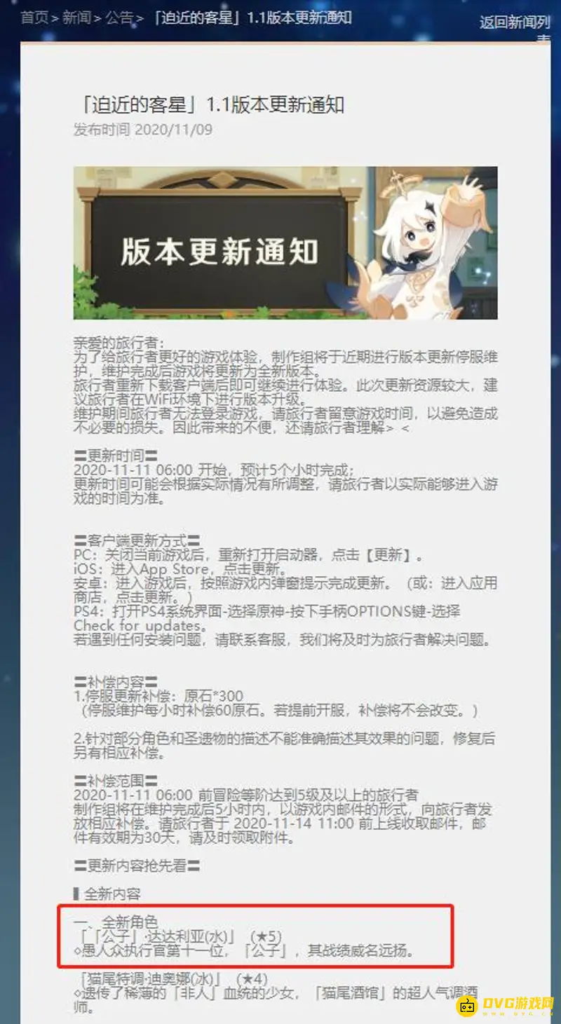 达达利亚第一次UP是在2020年11月11日的1.1版本。在官方公告可以看到,1.1版本-迫近的客星更新后,会上线新的五星角色-公子·达达利亚,这也就是达达利亚第一次UP的时间。