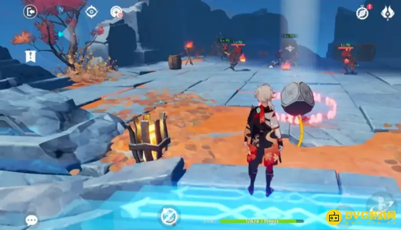 5、接着消灭完魔物后,看到对面有一个倒转过来被封印的机关。