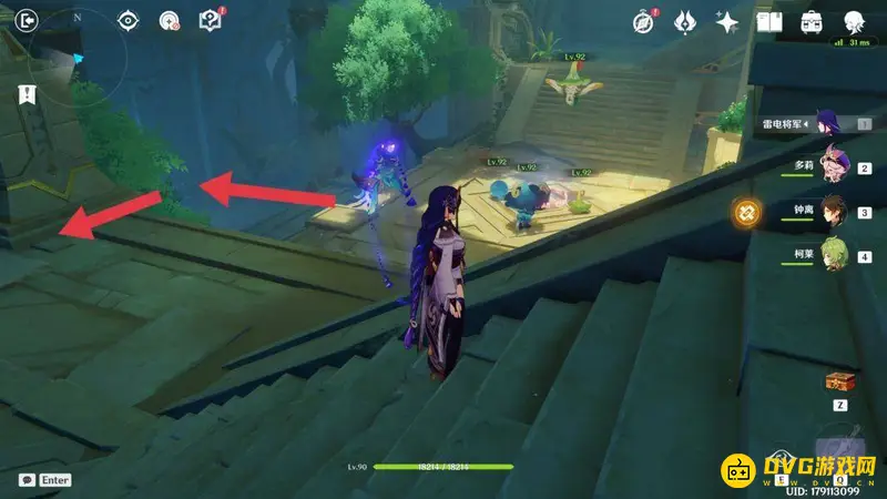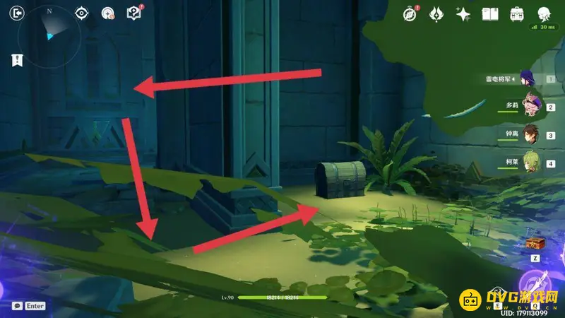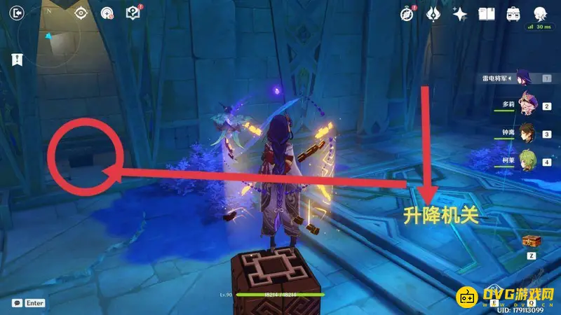 进入副本可以看到左边机关旁有提示