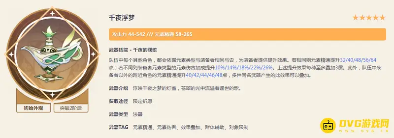 首选千夜浮梦,它是纳西妲的五星毕业武器,外观和武器特效契合纳西妲。该武器满级副属性提供高达265点元素精通。武器特效可为纳西妲自身提供元素伤害加成并为全队提供元素精通。