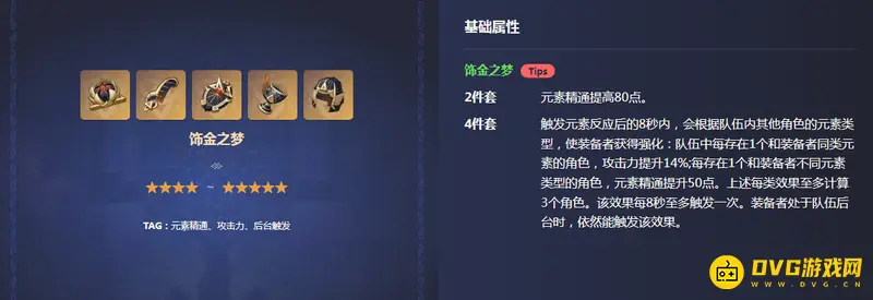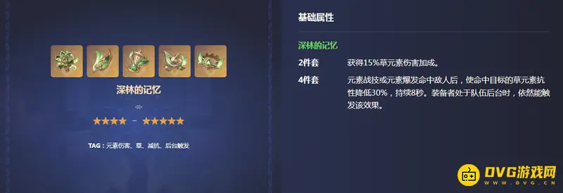 选择原则:在队伍中有另一位角色装备「深林的记忆」四件套的场合选用「饰金之梦」四件套,而对于队伍中没有任何人装备「深林的记忆」四件套的场合,纳西妲应该自己装备「深林的记忆」四件套。