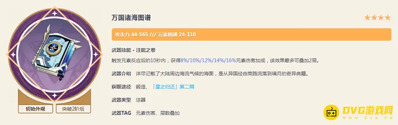 选择万国诸海图谱,它的满级副属性仅有110点元素精通,武器特效要求纳西妲处于前台时触发元素反应才能生效。需注意的是,纳西妲的元素战技「所闻遍计」没有角色当前属性快照机制,也就是不能锁面板。
