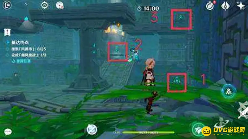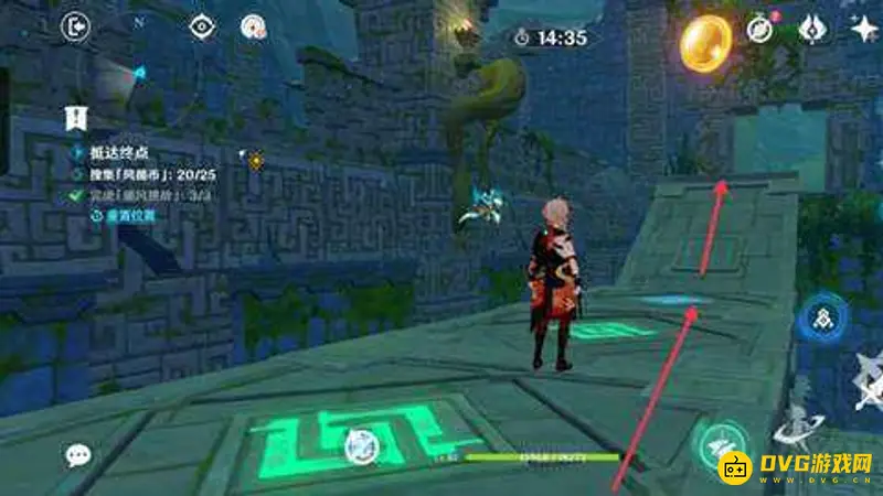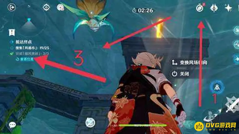 6、关闭风场,走到平台上再打开风场,收集风循币。