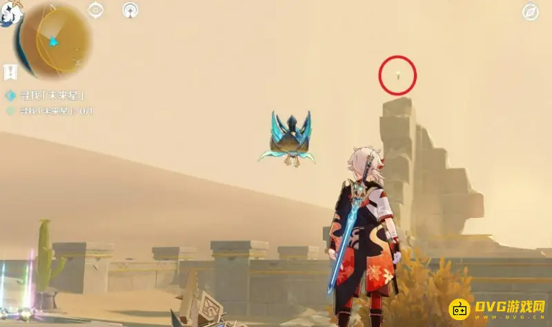 在通过路线到达丰饶绿洲的传送点后,未来星的位置就在我们的西北方向,根据路线提示就可以轻松找到未来之星。