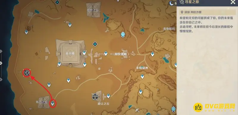 1,第二天的未来星位于沙漠地区,需要打沙漠新遗迹怪,建议提前调整好阵容。目标位置位于地上,可以传送到铄石之丘传送锚点然后跑过去。
