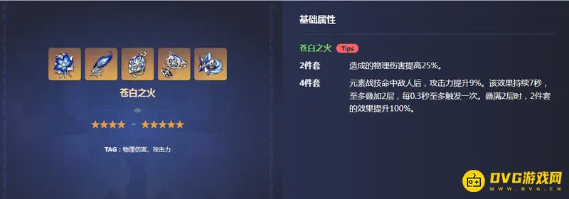 「苍白之火」4件套提供物理伤害加成和攻击力加成,使用物理流正常的输出手法E 重击即可叠满被动,且基本上不存在真空期,是最适合物刻的选择。「染血的骑士道」4件套提供的无体力消耗重击则在对群场合更有优势。