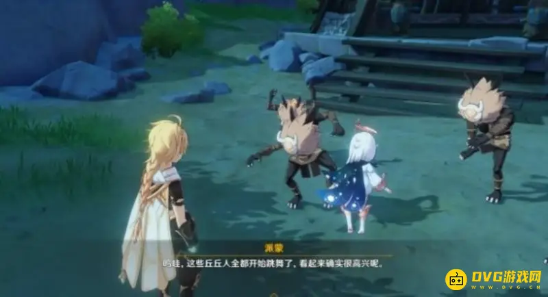 5、第三个选项选择最后一个选项,随后这三个丘丘人都会变得手舞足蹈,尤为兴奋。