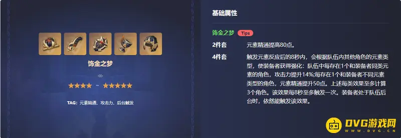 饰金之梦4件套根据队友类型同时增加攻击力或元素精通,对于打出超激化反应的刻晴增幅不俗。