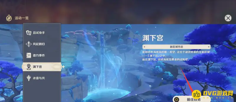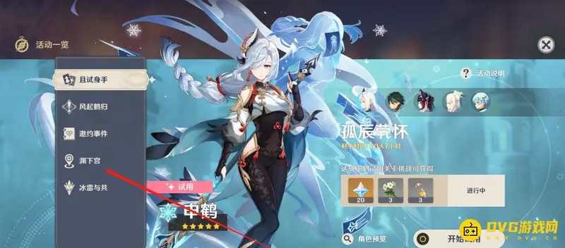 2、点击左下角渊下宫活动(已结束,活动时间是2022年2月17号的早上10:00开始,一直持续到2.5版本的结束)。