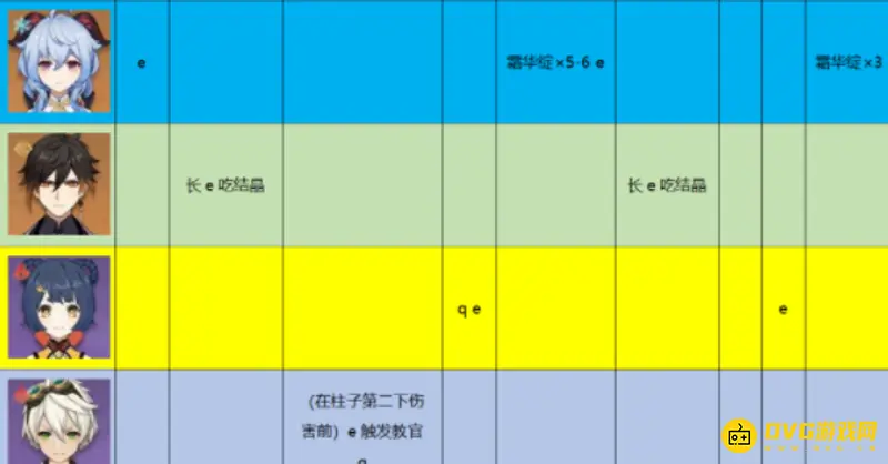 融甘队的手法上,甘雨E起手,切换钟离E套盾,然后切换香菱QE挂火,班尼特EQ,再切换甘雨输出。这套手法也可以重复。