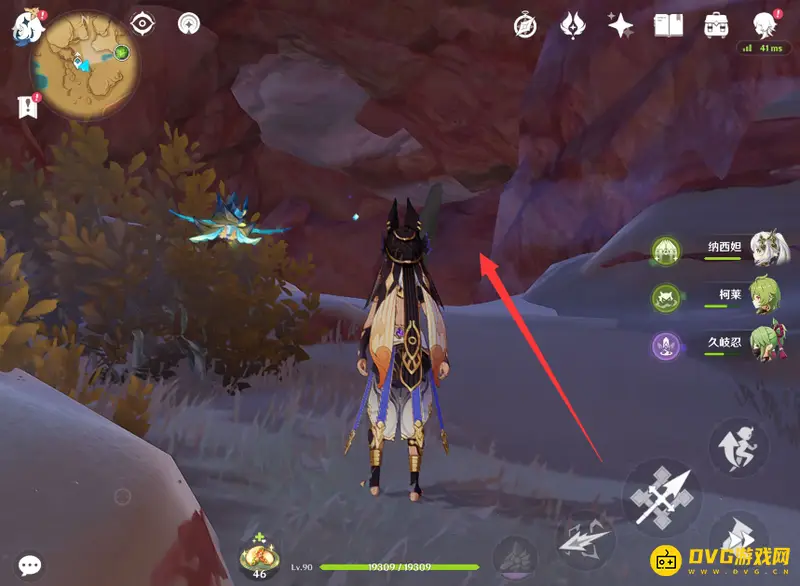 2、传送完成后,直接向前方(地图东方向)直走,飞下山崖。