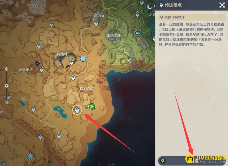 1、进入游戏界面,打开小地图,找到活力之家下方传送锚点。