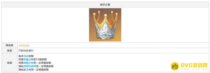 最后一个材料是智识之冕,主要是通过参加各种活动来获得,同时忍冬之树、神樱大树、梦之树和流明石的等级提升也可以获得这个材料。