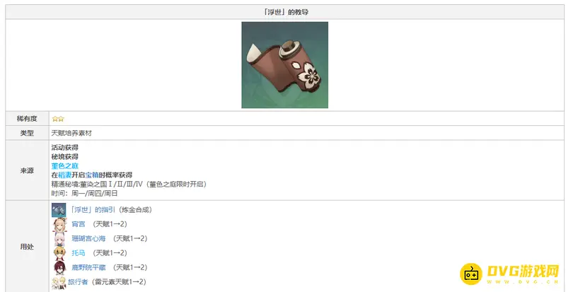 突破材料「浮世」系列天赋书主要刷取的地点是菫色之庭秘境(开启时间一般是周一周四和周日),同时还可以在活动中和稻妻地图探险中获得。