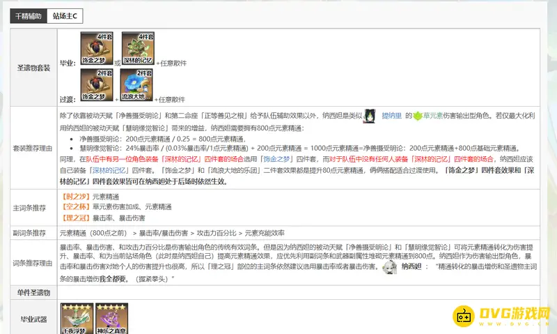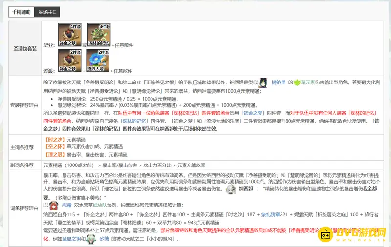 1.草神若是走辅助流,副词条需要优先考虑元素精通,将元素精通堆到1000,再去考虑暴击率爆伤、百分比攻击力和元素充能效率。