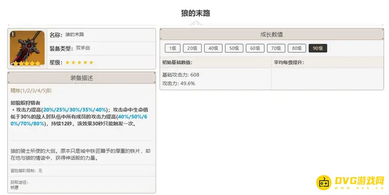 1、当北斗佩戴狼的末路时,在攻击生命值低于30%的敌人可以让队伍中的所有成员提高攻击力,最高可以提高80%的攻击力,这对宵宫武装队的输出提升是非常大的,要是没有狼的末路的玩家,次选四星螭骨剑即可。