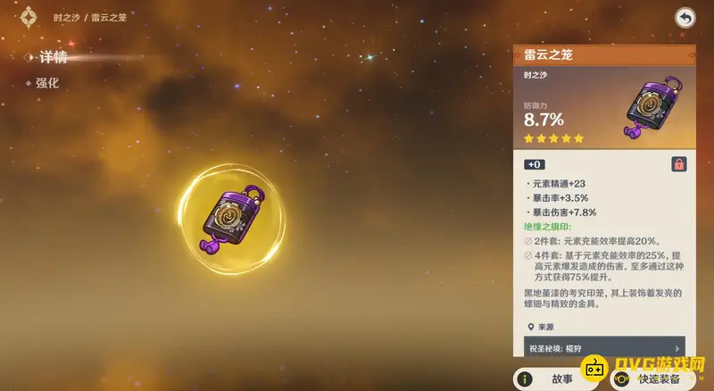 2、圣遗物方面选择绝缘四件套最合适,词条选择充能沙、雷伤杯、暴击或者暴伤头,因为队伍宵宫武装队的北斗来说,元素充能效率是非常重要的,要是充能跟不上,很容易断掉元素爆发,使得宵宫不能很好的进行站场输出,要是队伍中只有一个北斗是雷元素的话,需要确保充能在210%左右,要是除了北斗外,还有一个雷元素角色,那么元素充能只需堆到170%左右就够用了。