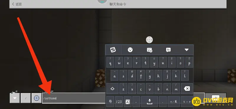 1、在游戏中按出输入框,输入指令“/sethome”。