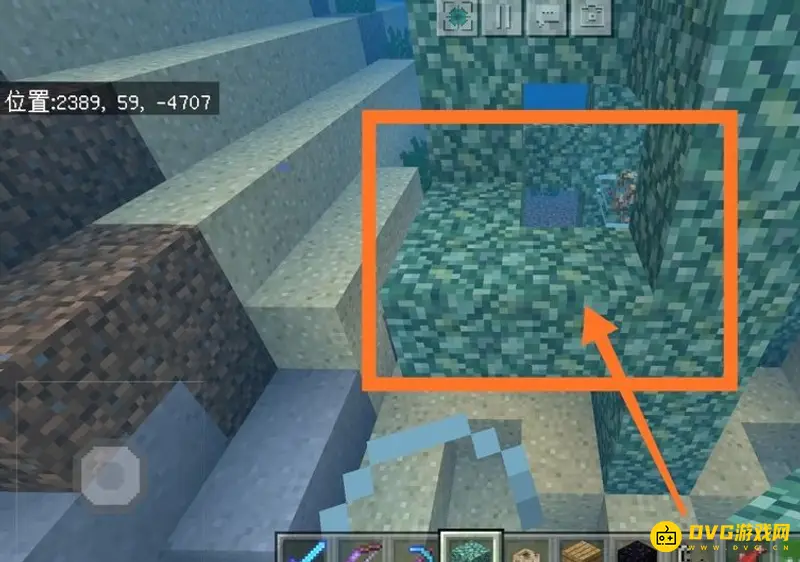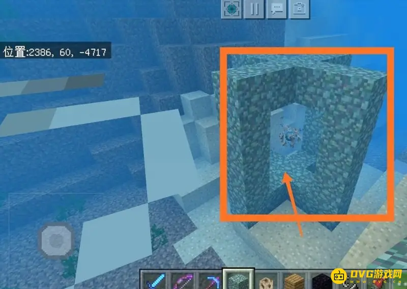 2.准备好材料之后,我们开始寻找地点,一般潮涌核心只能在海水里和水里才能发挥属性作用。所以我们需要找到海,海的面积最好要大一些,如下图所示。