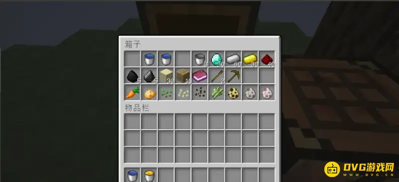 1、从箱子里取出制作刷石机的材料:水桶和岩浆桶。