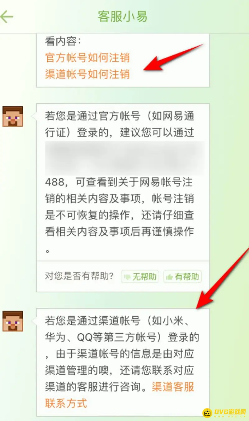 5.然后就会回一个信息给你,有两个注销,一个是“官方账号”,另一个是“渠道账号”。