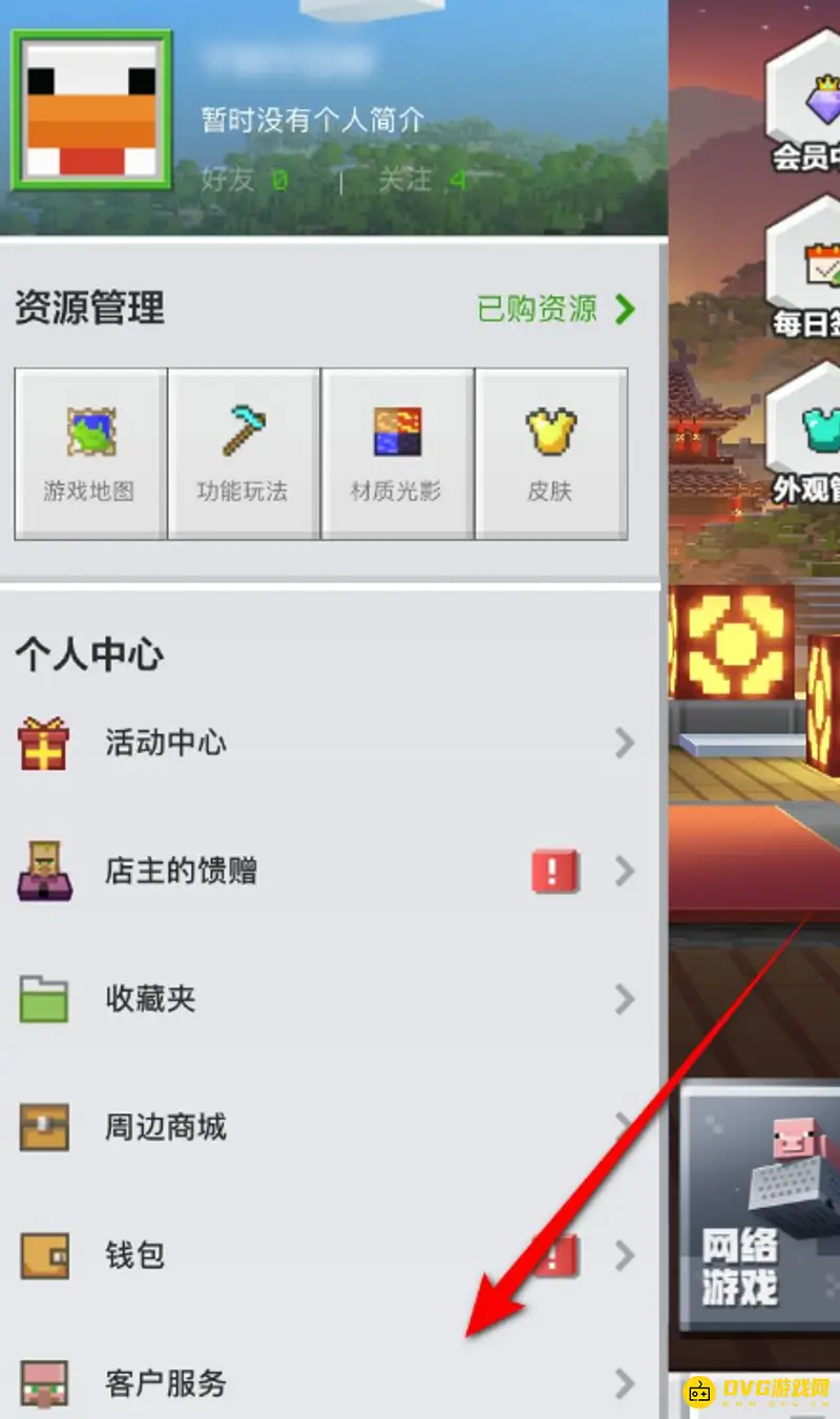 1.打开我的世界游戏首页,点击左上角头像打开。