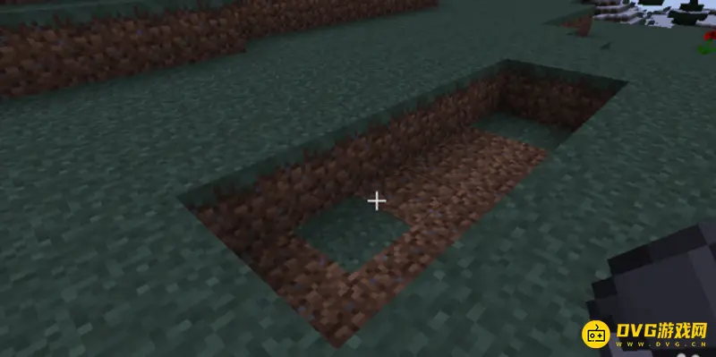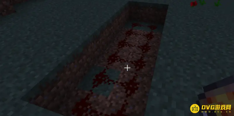 2、接着在坑底撒上红石,在此必须保证底部是平整的。