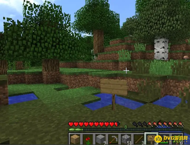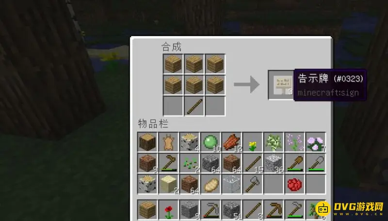 1、进入游戏地图中,玩家需要准备六块木板和一根木棒,然后打开工作台放入准备的材料即可合成三个告示牌。
