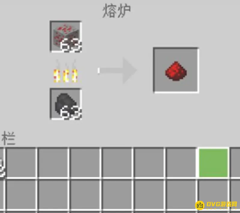 3、得到纸张后我们还需要指南针。我们得从矿洞中找到红石矿石方块和铁矿石方块。我们得到红石矿石方块和铁矿石方块通过熔炉冶炼后得到红石和铁锭。
