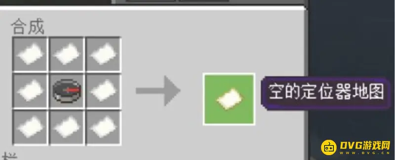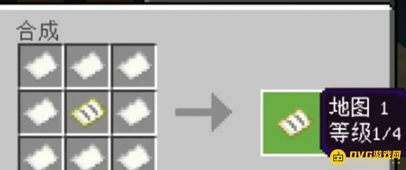 6、得到定位地图后我们可以通过中间放定位地图,四周放纸张的方式给定位地图升级。先将定位地图放在物品栏中右键点击全部可以升级4次。