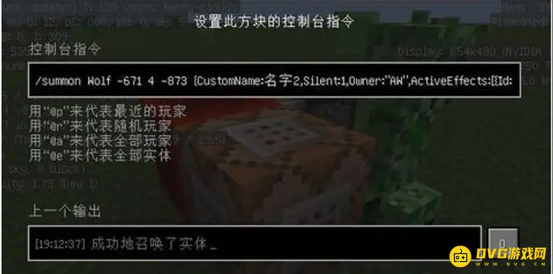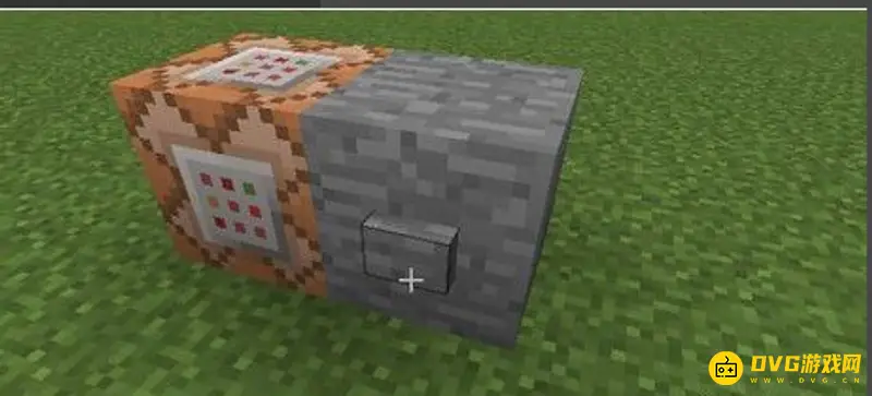 2.然后我们来看看命令方块的使用方法,对着命令方块右键,就可以输入指令了:激活指令方式很简单,将命令方块链接到红石电路当中就行了,最简单的就是下图这样的激活方式了。命令方块旁边摆上一个不透明方块,并在上面安放一颗按钮。