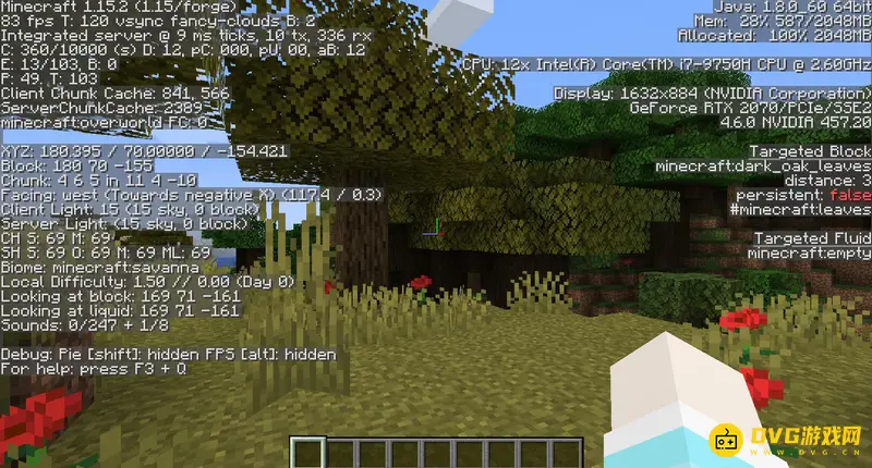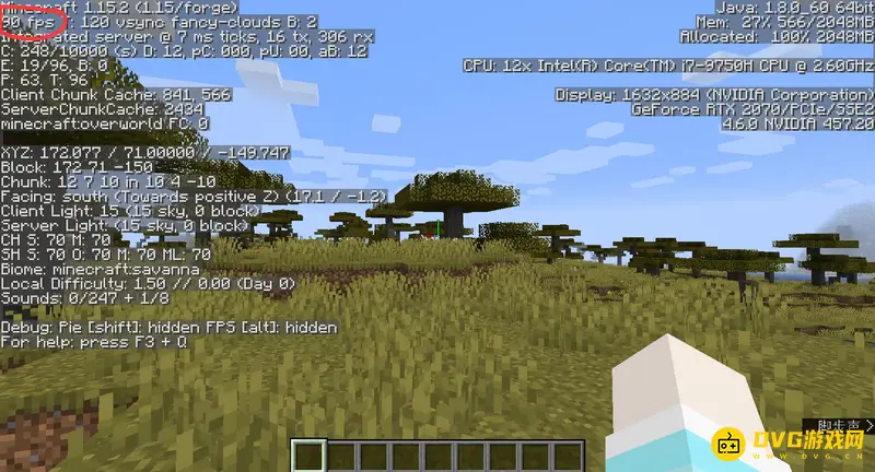 1,首先我们进入游戏界面,按下F3按钮打开参数界面。