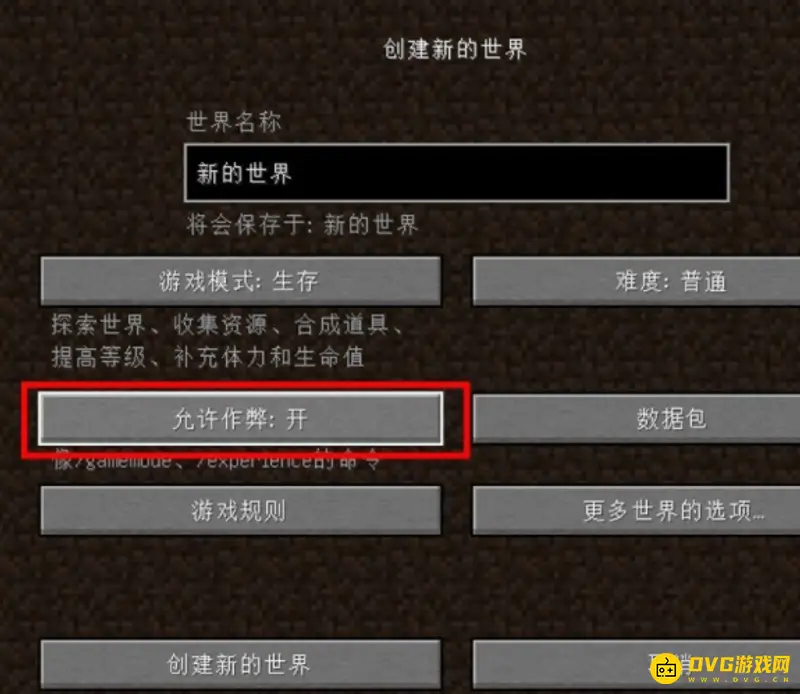 1、在创建游戏界面,选择生存模式,开启“作弊”,然后创建世界进入