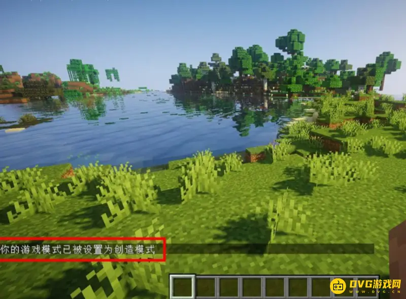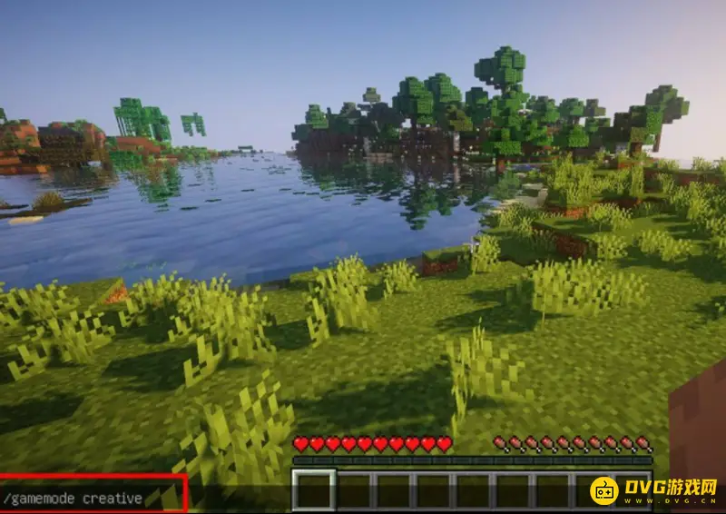 4、输入指令后点击“回车”键,看到生命和饥饿条都没有了,游戏已经开启创造模式
