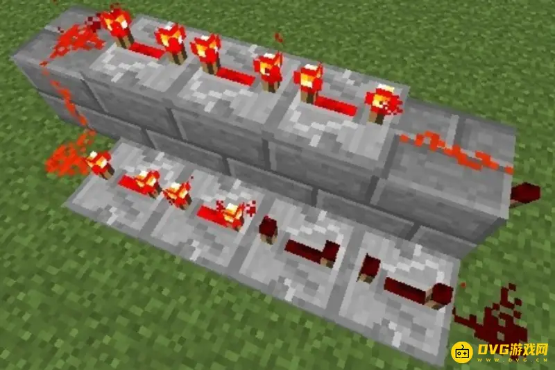 4.可以通过增加红石火把与中继器之间的中继器数量来控制红石信号传播的时间,放置的中继器越多,红石信号传播越缓慢。