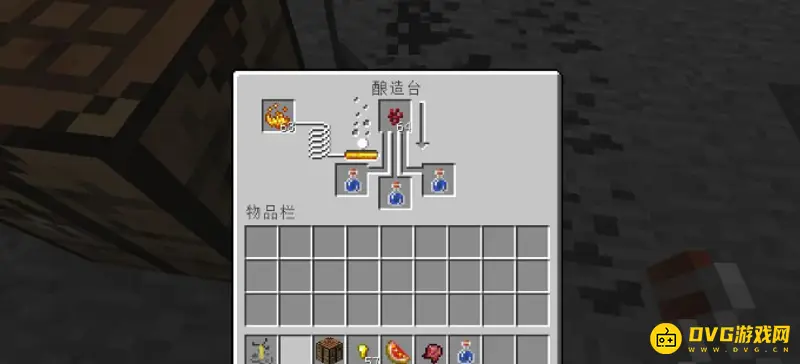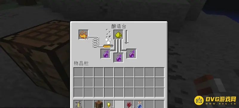 2.然后打开酿造台,放上地狱疣,下面放上水瓶。