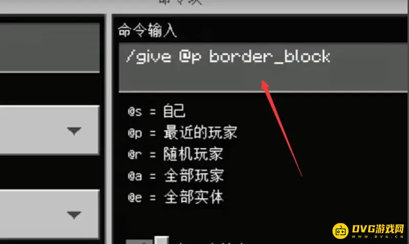 2、边界方块使用方法为,玩家调出指令界面,输入/give @p border_block,选择边界方块的颜色——红色,摇动摇杆,即可得到红色的边界方块。