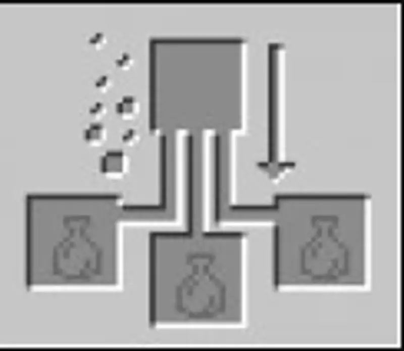 6.在下面的3个格子里放上水瓶(不一定要放3个,1个也行),在上面的格子里放上地狱疣,耐心等待一会儿,你就能获得3瓶粗制的药水。