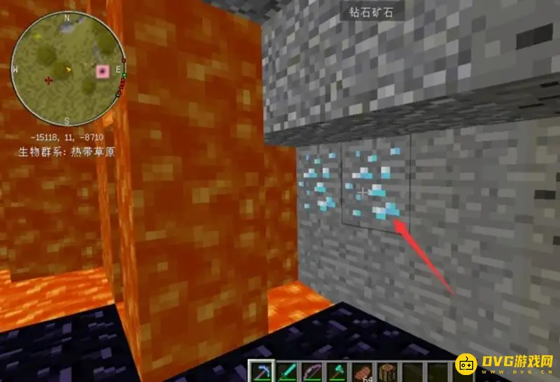 钻石一般都在底下的十一到十三层,要用铁镐及等级比铁镐还高的镐层可以。等挖到岩浆河了就可以在边上找找了,一般都是会有的。