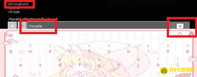 1、点击打开聊天命令框,在命令框中输入指令【/locate stronghold】,然后发送。