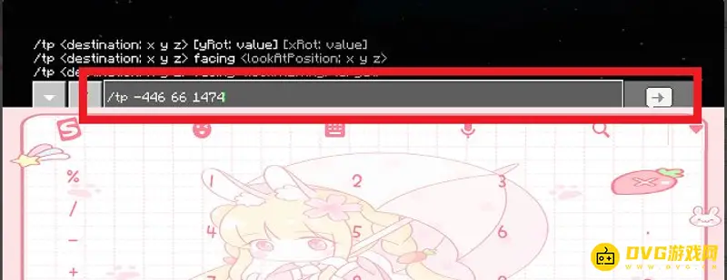 3、重新打开命令框,输入并且发送第二条指令【/tp x坐标y坐标z坐标】。