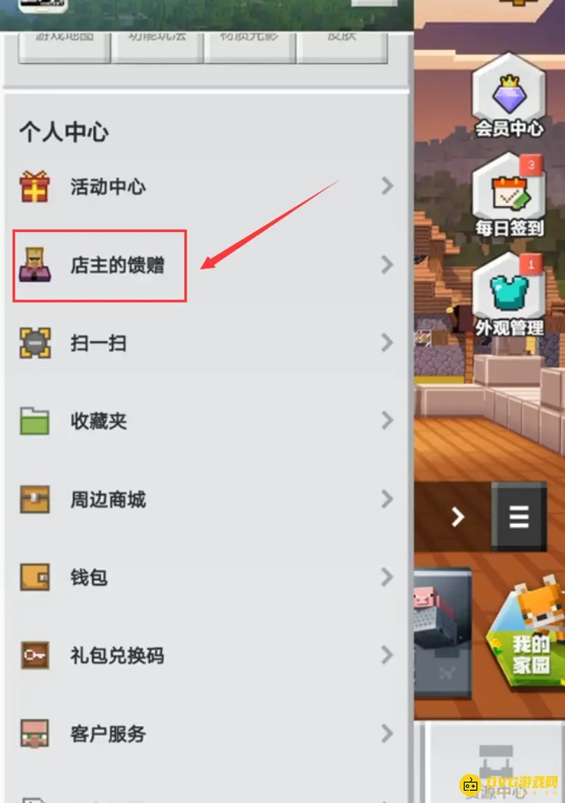 1、打开游戏的个人中心,选择“店主的馈赠”选项。