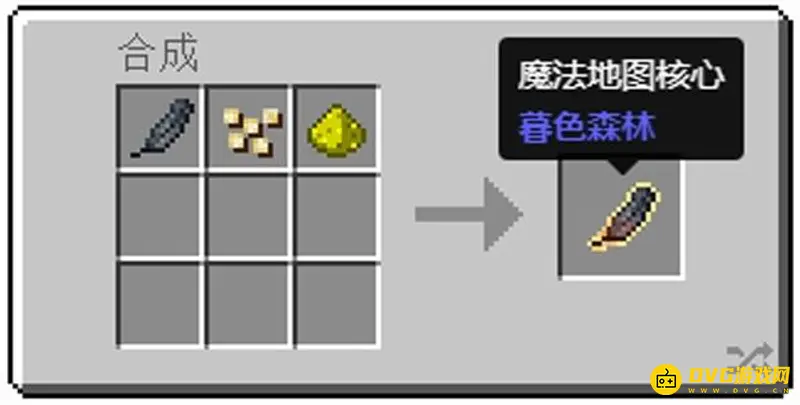 2、魔法地图核心同样需要使用材料在工作台合成,合成材料为乌鸦羽毛、火炬浆果和荧石粉;