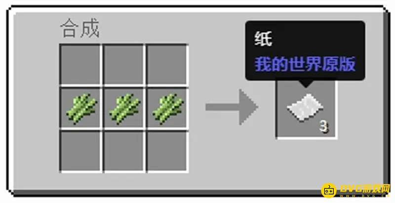 3、纸则需要使用甘蔗制作,使用3个甘蔗即可在工作台上制作出3张纸。