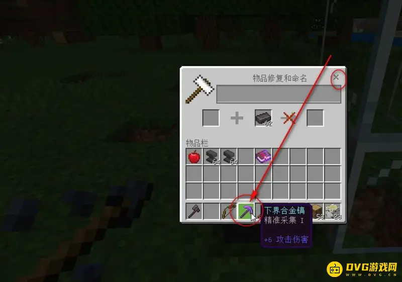 1、进入游戏我的世界,玩家需要使用物品铁毡来修复物品。