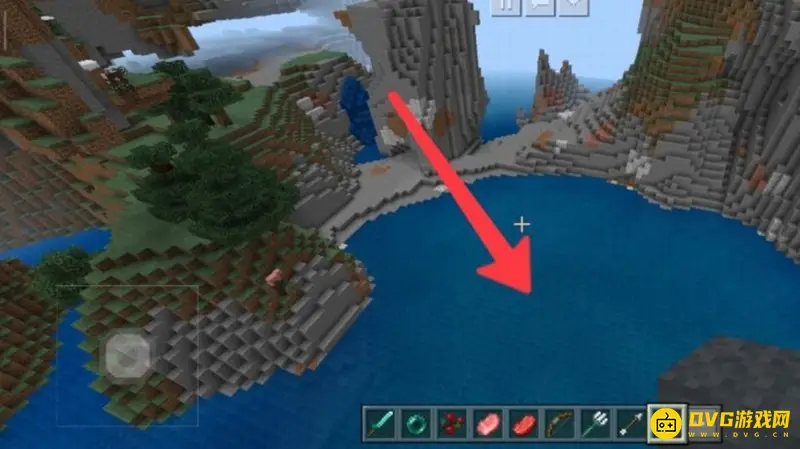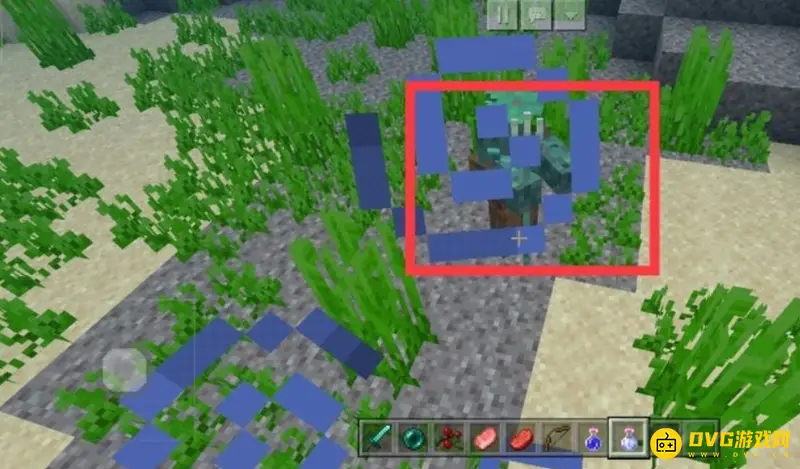 1、首先进入游戏,然后找到一块有水的地方,我们通过水下怪物来获得三叉戟,如下图所示。