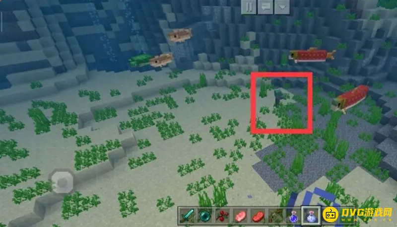 2、可以看到水下很远的地方有个怪物,怪物手中拿的就是我们需要的三叉戟,如下图所示。